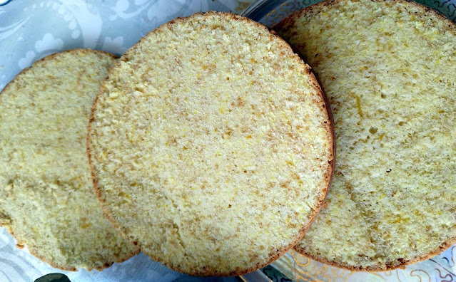 Se coace blatul timp de 50 minute la 170 C. Se lasa sa se raceasca de tot, apoi se taie in trei foi egale.